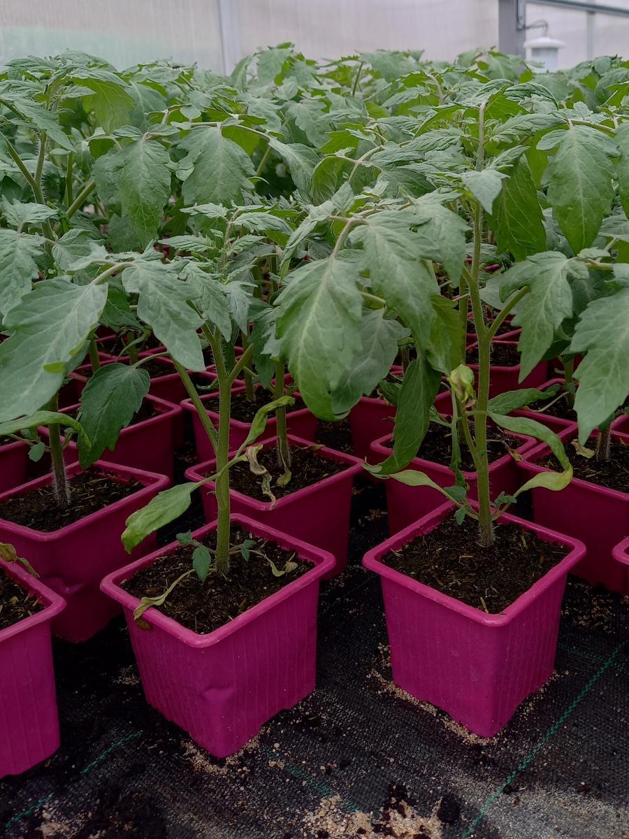 Plant de tomate cerise noire prêt à planter.