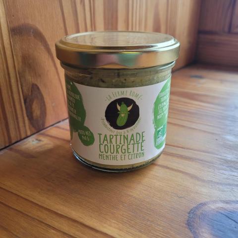 Ingrédients : Courgettes de la ferme (72.3%), graine de tournesol, jus de citron (9.04%), huile de tournesol, sel, menthe (0.20%) et poivre noir.