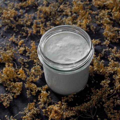 Le yaourt comme dans notre enfance. Yaourt ferme avec sa délicate couche de crème sur le dessus, subtilement sucré, dont le parfum est obtenu grâce à l'infusion de plantes.